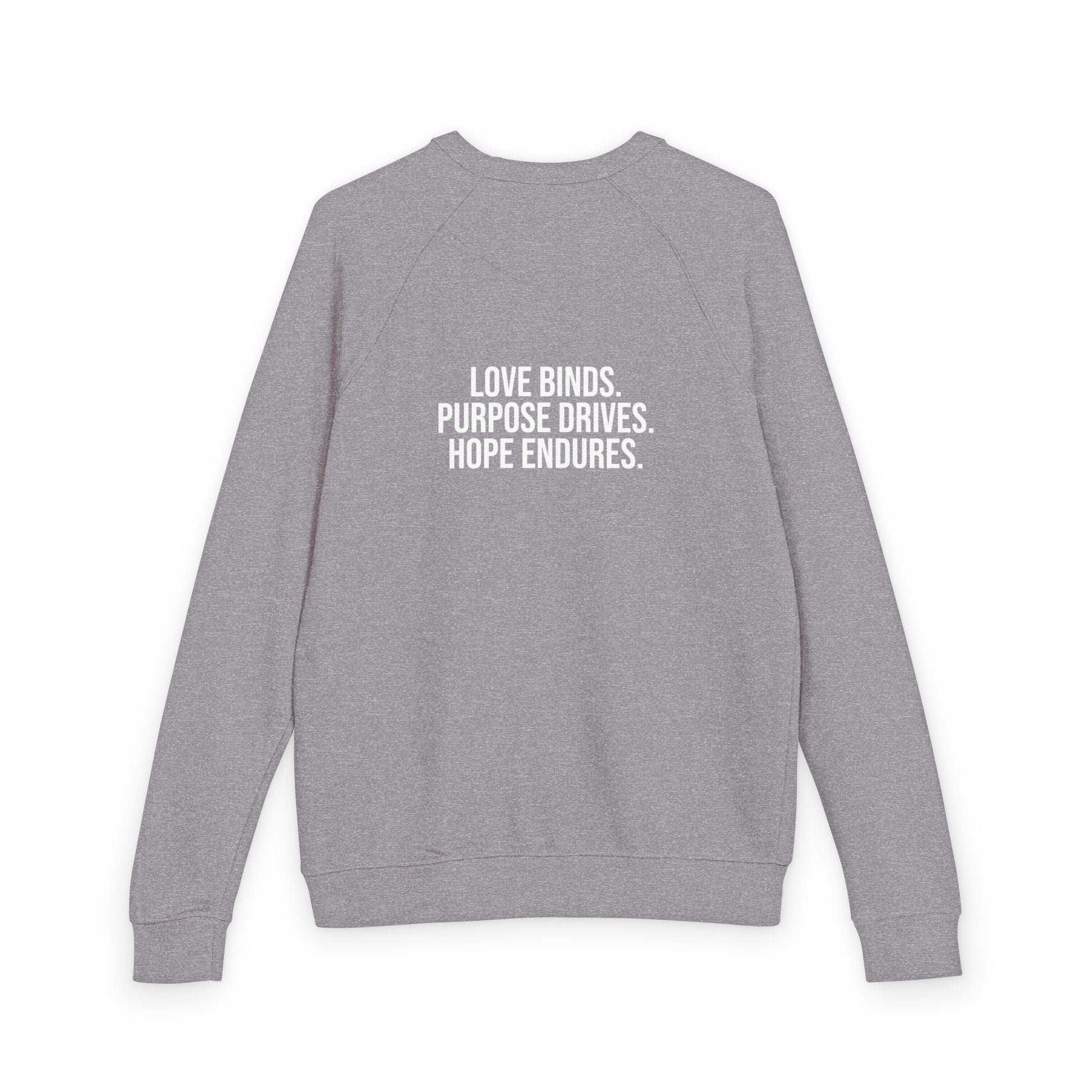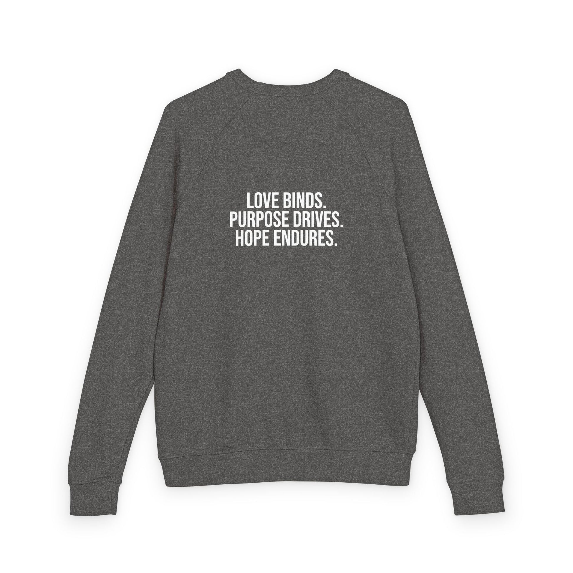 Love Binds. Purpose Drives. Hope Endures. Inspirational Unisex Crewneck Sweatshirt, Gift for Him or Her, Casual Wear, Express Kindness, Everyday Comfort